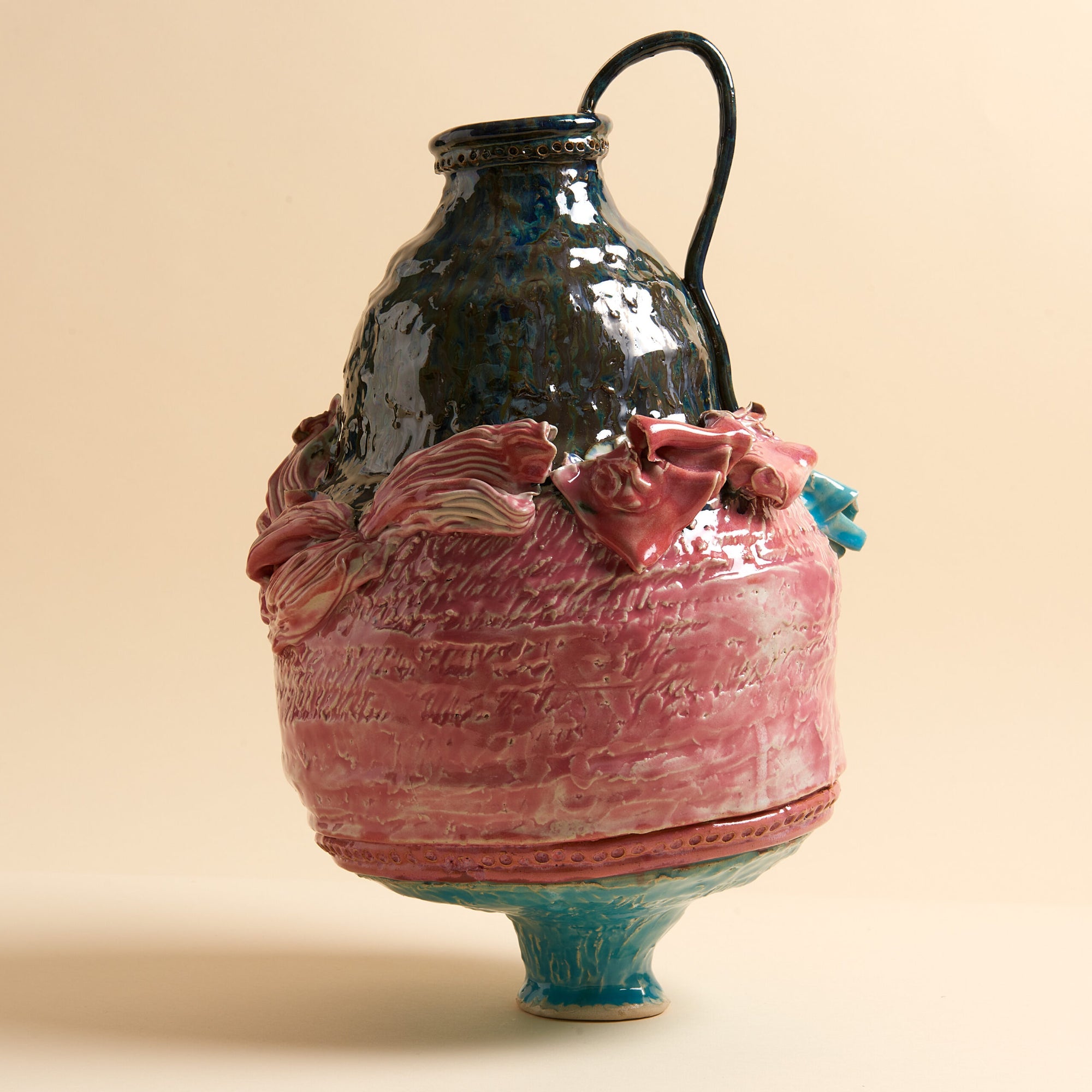 Born in Greece and raised in Sydney, Australia, Stella’s practice is shaped by her experiences of travel and migration, layered with multiple cultural references. Recently returning to the material of clay, her sculptural forms and coiled vases pay homage to her Greek heritage. Drawing on classical Grecian shapes, her works are reimagined through contemporary ideas of chance, precarity, and invisible algorithms.