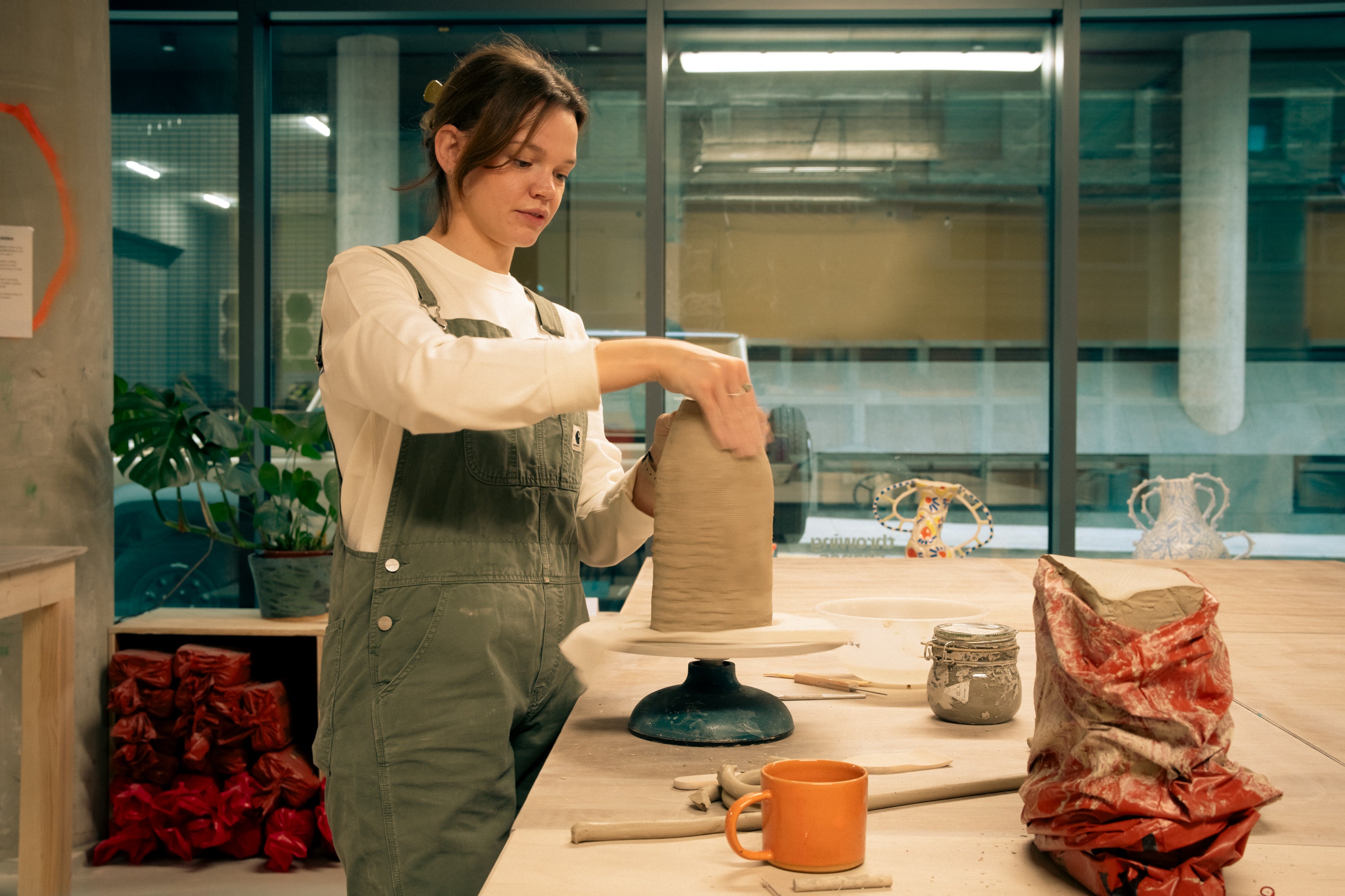 she/herÁine has been with Throwing Shapes from the very beginning, first as the studio technician and now as facilities manager, ensuring the studio's operations run smoothly—often found covered in clay or half inside a kiln. Her journey from farm to fine art began on her family’s dairy farm outside Virginia, Cavan, where her passion for practical, tactile work took root. After exploring creative and cultural industries, she studied Fine Art at Technological University Dublin, where her interest in ceramics was ignited through sculpting, hand-building, and slip casting. Áine further honed her craft as a working artist in Berlin’s Ceramic Kingdom, gaining valuable experience in wheel-throwing and community studio practices. Now back in Cavan since mid-2023, she creates ceramic work and facilitates classes from her studio. At Throwing Shapes, Áine teaches hand-building tasters, six-week courses, and tableware courses. She loves watching her students' addiction to clay and its possibilities grow over the weeks and takes pride in seeing them become members she gets to see regularly. Her work has been exhibited at Argillà Italia, the International Ceramics Festival, the National Craft & Design Gallery in Kilkenny, and the 190th RHA Annual Exhibition. Follow on Instagram @aineclayfarrelly