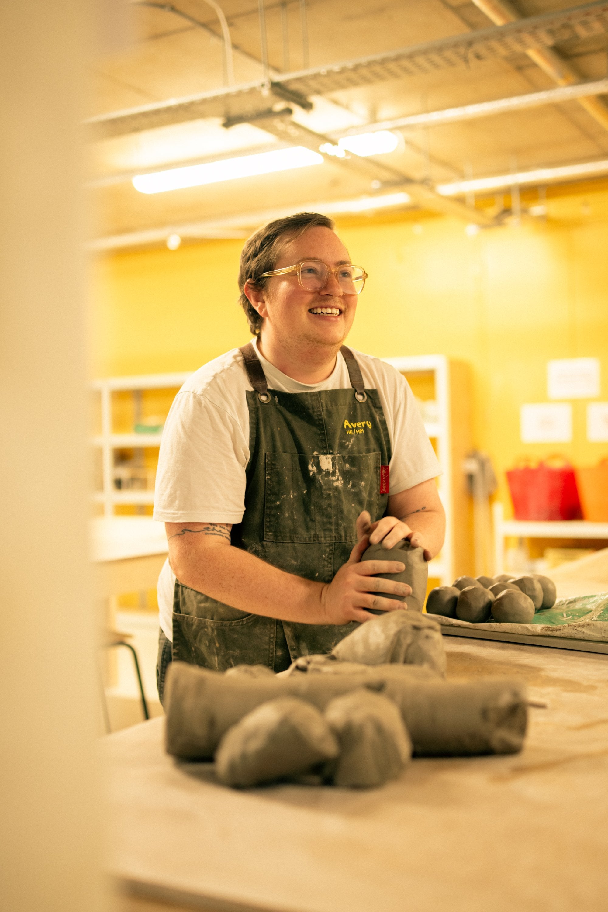 he/himAvery Parducci is a Seattle native who relocated to Dublin in 2019, where he balances a career in communications with a passion for pottery. Specializing in wheel throwing and hand-building, Avery creates functional pieces inspired by the natural beauty of the Pacific Northwest and Ireland. His journey into ceramics began over seven years ago with a 10-week course taken on a whim, sparking a love for clay that he has cultivated through self-teaching, community practice, and formal courses. Surprised by how quickly he took to the wheel despite never considering himself “artistic,” Avery is now dedicated to helping others discover the joy of pottery. For the past five years, Avery has been teaching 6-week hand-building courses and wheel throwing tasters, emphasizing that anyone can make pottery with the right tools and guidance. His work has been showcased in exhibitions such as the Ceramic Ireland Annual Members Exhibition at Dublin Castle and the Community Cup Showcase at Rat City Studios in Seattle. When he’s not in the studio, Fun fact: Avery enjoys spending time with his two favourite things: dogs and books. Follow him on Instagram @parduccipottery