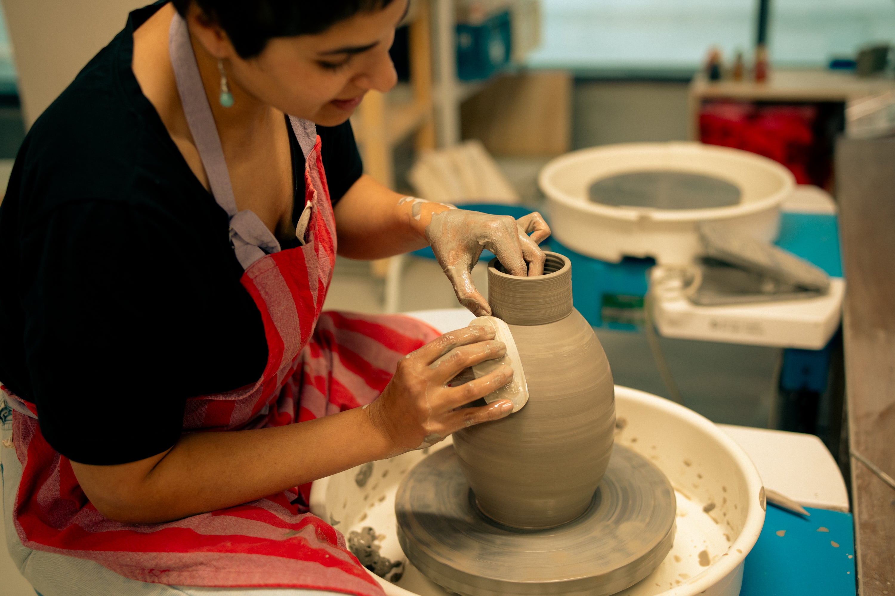 she/herMahima Singh has been throwing pots since 2013 and is endlessly passionate about clay and ceramics. Her journey includes working as a production potter at Arran Street East in Dublin, serving as a resident artist and instructor at Clay Station in Bangalore, and interning at Pottery Northwest in Seattle. Now based in Dublin, Mahima runs her own studio, creating porcelain works that range from large to small and are adorned with intricate, vibrant inlay designs. She thrives on guiding makers through the design and crafting process, believing clay to be both a joyous and challenging material that demands respect, planning, and perseverance to achieve pieces with charm and integrity. Specializing in wheel-throwing techniques, she helps students refine their skills, pushing boundaries to throw wider, taller, and bolder while exploring surface decoration and altered forms. Mahima teaches Improver Throwing classes at Throwing Shapes. Fun fact: when she’s feeling down, she loves googling images of dogs eating ice cream—because why not? Follow her on Instagram @mahima.s.ceramics